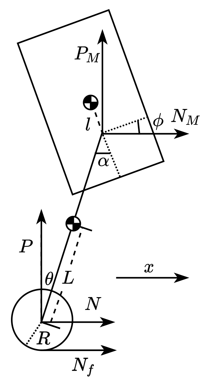 %N :驱动轮对摆杆力的水平分量 mp : 摆杆质量